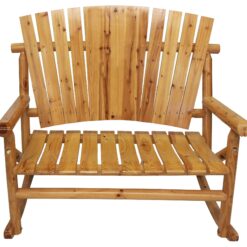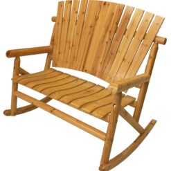 Built from durable pine and fir logs, the bench is pre checked and hand polished to reduce splitting and ensure long lasting performance. The exposed wood grain is finished with a clear lacquer varnish that preserves the natural look while protecting against everyday wear. Gentle rocking motion and a spacious seat make this bench ideal for porches, patios, cabins, or covered outdoor spaces.