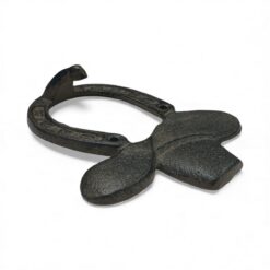 Made from solid cast iron, it offers durability and a sturdy feel, while the dark, antique-style finish enhances its vintage, weathered look. The single curved hook is ideal for hanging hats, coats, scarves, keys, or small bags, making it both decorative and functional.