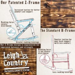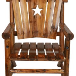 Bring timeless charm and everyday comfort to your porch or patio with this rustic wooden rocking chair. Designed with Leigh Country’s signature high rounded back, it features a star cut out detail that adds character while celebrating traditional country style. The gently curved seat slats and rounded armrests are crafted for long lasting comfort, making this rocker an inviting place to unwind.