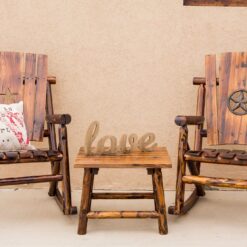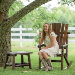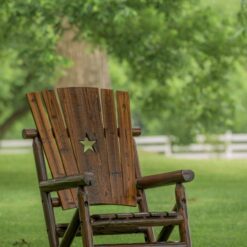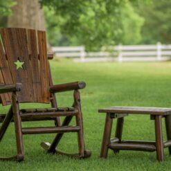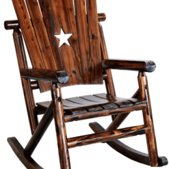 Built from durable pine and fir logs, each chair is pre checked and hand polished to highlight the natural wood grain. A clear lacquer finish helps preserve and protect the wood while maintaining its warm, charred appearance. Whether placed on a front porch, covered patio, or sunroom, this rocking chair delivers both style and sturdy performance.