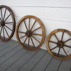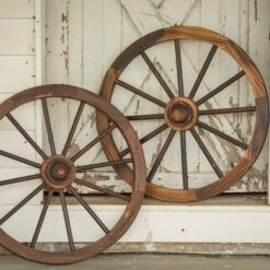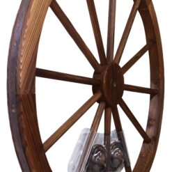 Large decorative wooden wagon wheel with classic rustic appeal