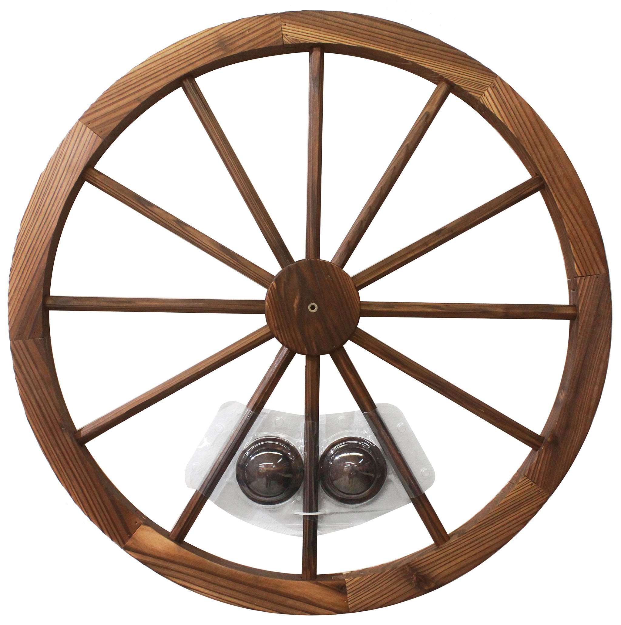 The center hub ships unattached for easier handling and quickly screws into place during setup. With its sturdy construction and timeless design, this wagon wheel brings warmth, texture, and versatility to your décor.