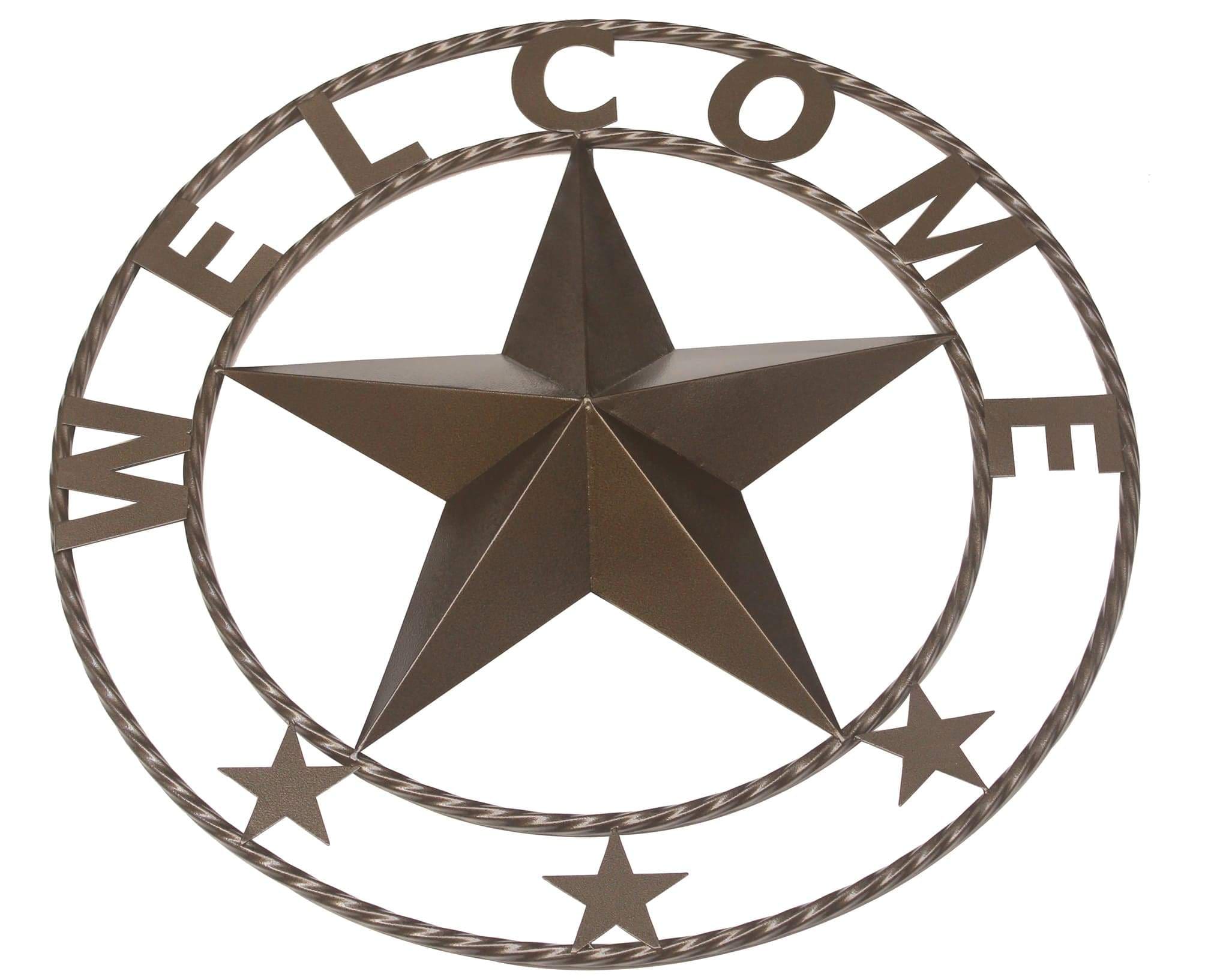 Bring inviting personality to your outdoor spaces with this charming metal wall accent. Designed for versatility, this decorative star looks right at home on exterior walls, sheds, garages, or patios. The bold central star is framed by two circular rings and accented with the word WELCOME and three smaller stars, creating a friendly focal point that adds character wherever it is displayed.