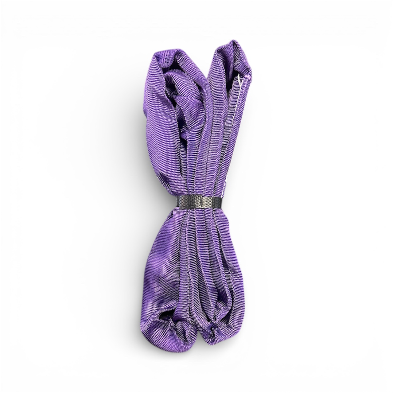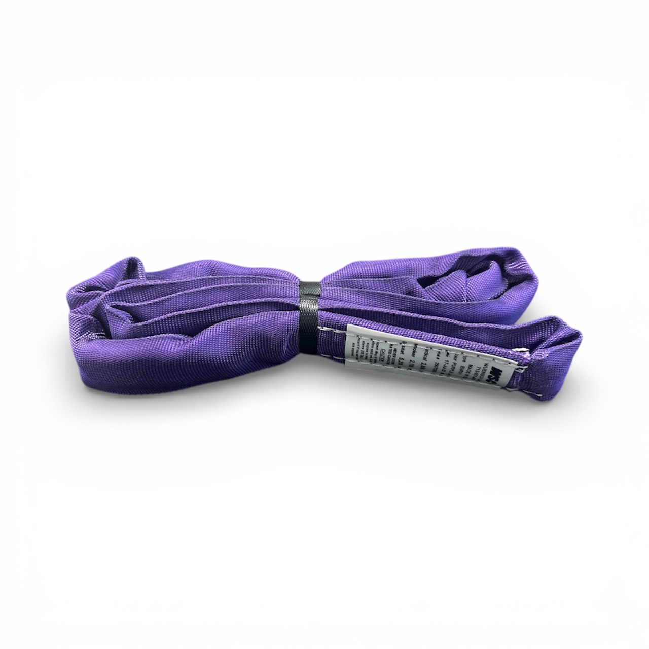 This purple endless round sling is designed for efficient lifting in tight spaces where flexibility and load protection are essential. Its continuous loop construction allows for smooth load engagement while reducing wear on both the sling and the lifted material.