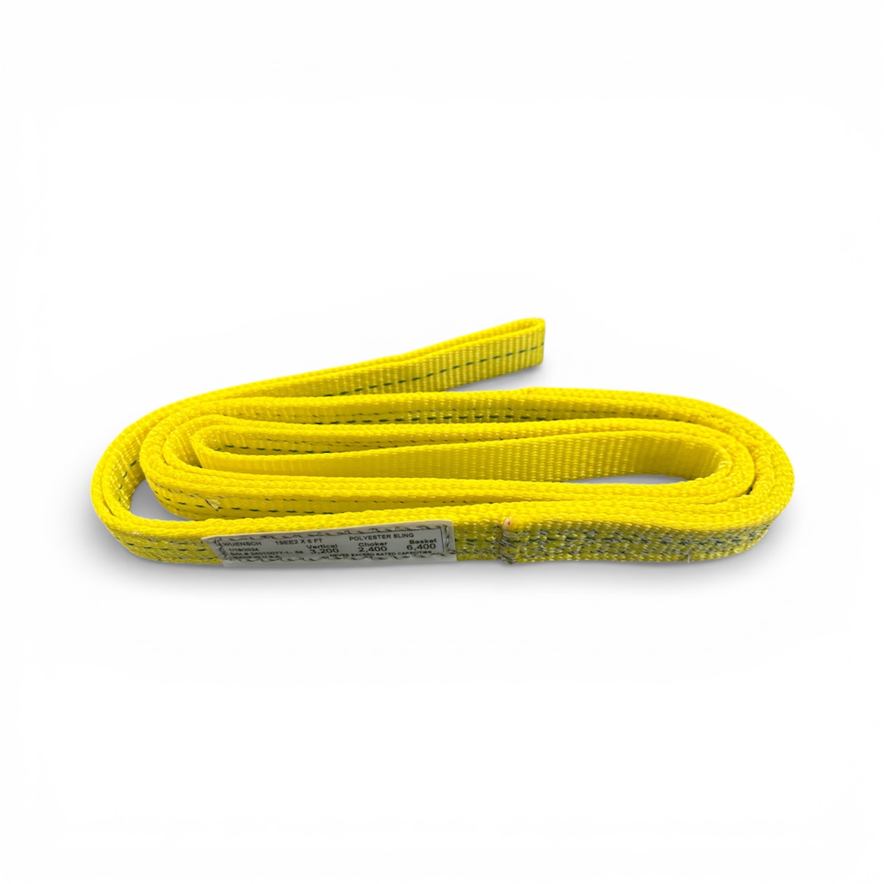 Constructed from durable polyester webbing, the sling resists stretching while maintaining excellent load control under tension. The two ply construction increases durability and service life, while the flat eyes allow for quick, secure attachment to hooks, shackles, and other lifting hardware. Polyester material also provides strong resistance to moisture, abrasion, and many chemicals, making it well suited for demanding jobsite conditions.