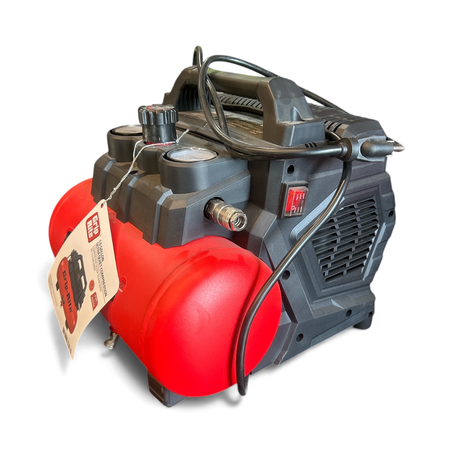 The Grip-Rite® RED System GR200QW – the ultimate work companion for trade professionals and DIYers alike. This powerhouse operates at less than 60dB, offering a tranquil work environment without compromising performance. With unbeatable pump-up time and a lightning-fast recovery rate, the GR200QW delivers an impressive 3.2 Cfm at 90 Psi, powered by its efficient 1 horsepower induction motor that reaches up to 125 Psi. Weighing just 34 Lbs, this portable beast is designed for easy mobility, making project transitions seamless. Its low AMP draw feature eliminates risk of tripped breakers during startup, while the oil-free induction motor ensures unmatched reliability and longevity. Complete control is at your fingertips with the integrated control panel featuring two gauges and an easy-to-operate air pressure regulator. The quick connect coupler simplifies hose connections, and the lever handle tank drain effortlessly removes excess moisture. The GR200QW provides precise airflow without overwhelming noise, allowing you to focus on delivering exceptional results.