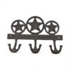Two sturdy lower hooks provide reliable space for hanging coats, hats, keys, leashes, or light gear, making it a perfect fit for entryways, mudrooms, ranch homes, cabins, or offices. The dark rustic finish enhances the textured detailing, giving the hook an authentic, timeworn look that pairs well with Western, farmhouse, and Southwestern décor styles.