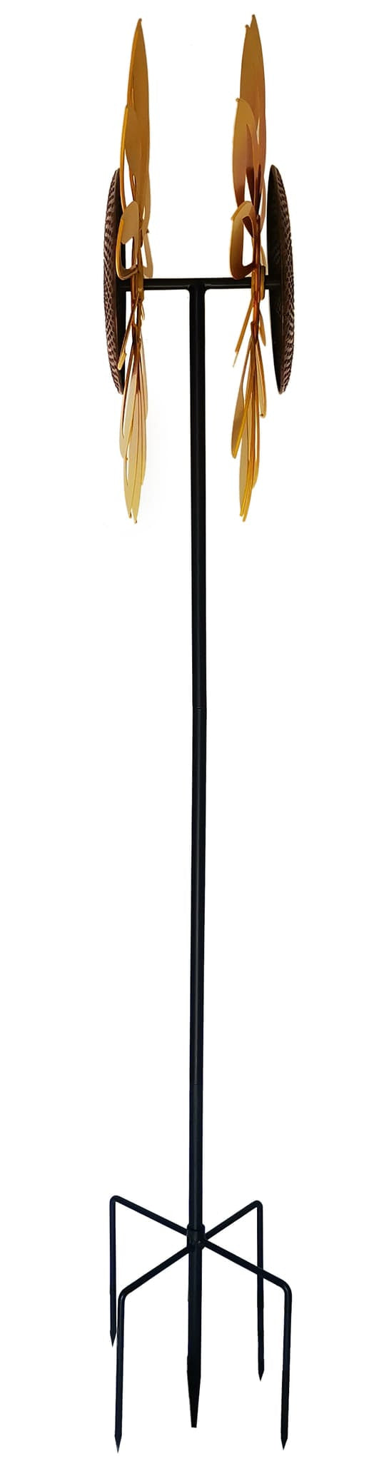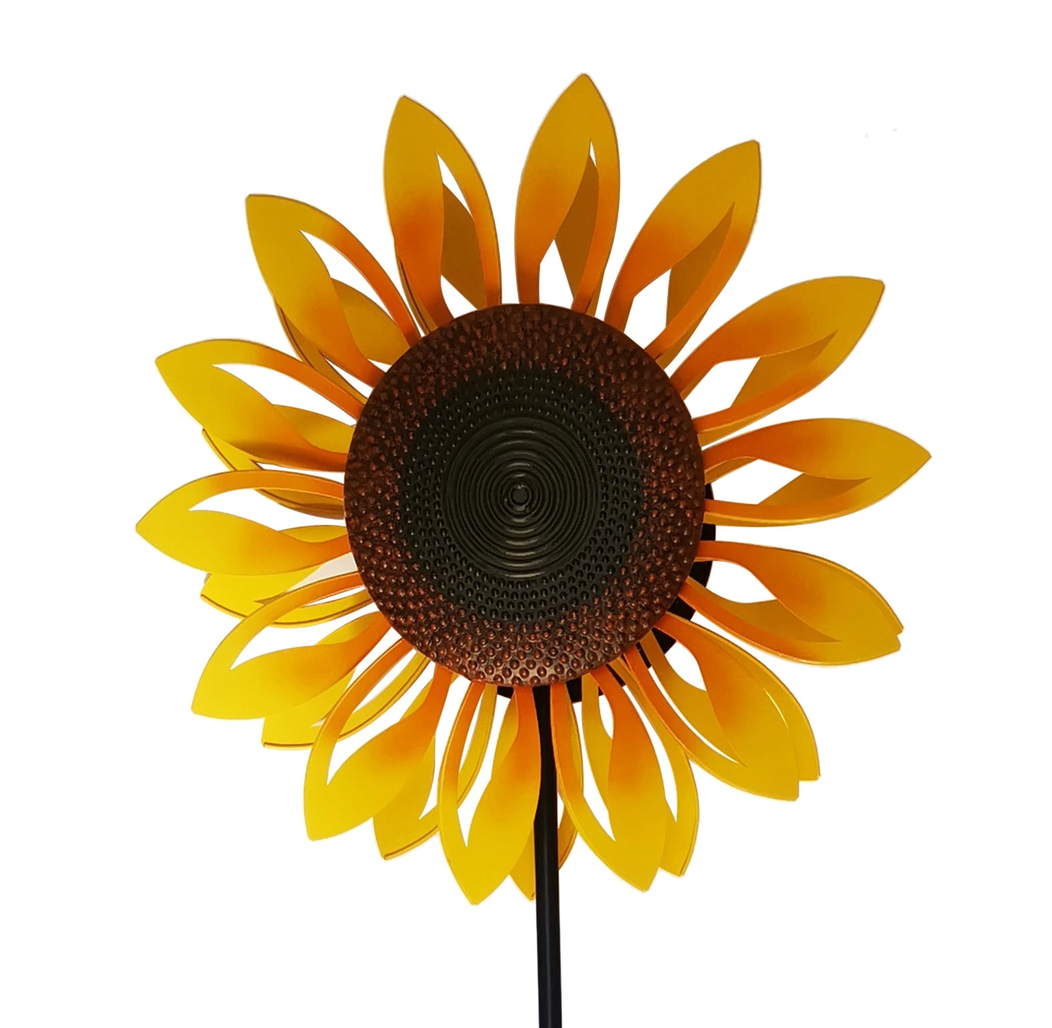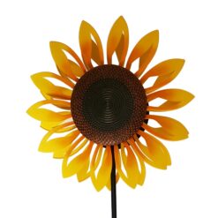 Bring cheerful movement and color to your landscape with this striking sunflower wind spinner. Designed with vibrant yellow dual layer petals and a textured bronze center, it creates an eye catching display as each layer spins independently with the breeze. Its tall profile and bold finish make it a standout accent for gardens, yards, and patios throughout the year.