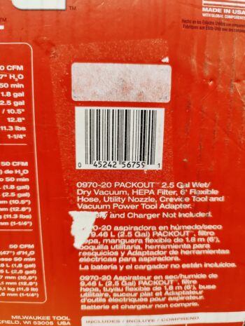 - The Milwaukee M18 FUEL Packout 2.5 Gal. Cordless Wet/Dry Vacuum is the most powerful small capacity 18-Volt wet/dry vacuum, fully compatible with the Milwaukee Packout Modular Storage System. Its POWERSTATE brushless motor delivers up to 60% more suction, giving users powerful performance to easily clean up common wet and dry jobsite debris. Packout compatibility gives this cordless wet/dry vacuum unmatched mobility, saving users the time spent hauling tools on and off the jobsite. Users can use this vacuum on and off their Packout stack, making this the most portable and versatile wet/dry cleanup solution available. At just 87 dB(A), this Milwaukee PACKOUT vacuum is 2X quieter than traditional jobsite wet/dry vacuums. The M18 FUEL PACKOUT 2.5 Gal. cordless wet/dry vacuum includes a certified HEPA filter for optimal dust and Microparticle collection, as well as a power tool adapter for efficient dust collection from other power tools. As a part of the M18 System, it is powered by REDLITHIUM Battery Packs, which deliver users up to 30-minutes of runtime on a HIGH OUTPUT 8.0 Battery Pack in high mode and over 50-minutes in low mode.