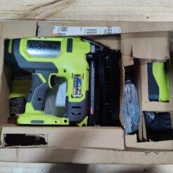 RYOBI introduces the 18V ONE+ 16-Gauge Cordless AirStrike Finish Nailer with 1.5 Ah Battery and Charger. This Finish Nailer features AirStrike Technology, which eliminates the need for noisy compressors, bulky hoses, or expensive gas cartridges. This means faster setup and easy maneuverability on the job site. This Straight Finish Nailer is capable of sinking up to 2-1/2 in. nails in hardwoods. The tool-free depth of drive adjustment allows for proper setting of nail heads. This nailer allows for extended periods of continuous work by sinking up to 1,000 nails per charge. It additionally offers a 78% smaller nose for tight spot access and superior drive quality, compared to P325. There is also a convenient adjustment dial to regulate air pressure speed for optimal performance. Great for crown molding, baseboard and exterior trim, this Finish Nailer is the perfect addition to any carpenter or DIYer’s tool collection. The included battery and charger are compatible with all RYOBI 18V ONE+ Tools. Best of all, it is part of the RYOBI ONE+ System of over 300 Cordless Products that all work on the same battery platform. This kit is backed by the RYOBI 3-Year Manufacturer’s Warranty and includes 2 non-marring pads, a 1.5 Ah Battery, an 18V Charger, and operator’s manuals.