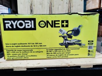 RYOBI introduces the 18V ONE+ 7-1/4 in. Sliding Compound Miter Saw. This saw boasts a heavy duty 18V motor that delivers up to 3,600 RPM for the power to make difficult cuts or a variety of small cuts in wood. Not only is this saw powerful, it’s extremely portable: Carry it anywhere and cut what you need without the hassle of a cord or trying to find an electrical outlet. It features a 1-1/4 in. dust port to help keep your work area clean. The 40-tooth Carbide-Tipped blade provides improved performance for fast, clean cuts and cross cut up to a nominal 2 in. x 10 in. Best of all, it is part of the RYOBI ONE+ System of over 300 Cordless Products that all work on the same battery platform. Backed by the RYOBI 3-Year Manufacturer’s Warranty, the 18V ONE+ 7-1/4 in. Sliding Compound Miter Saw includes a 40-tooth Carbide Tipped Blade, blade wrench, dust bag, work clamp, two carrying handles, and operator’s manual. Battery and charger sold separately.