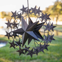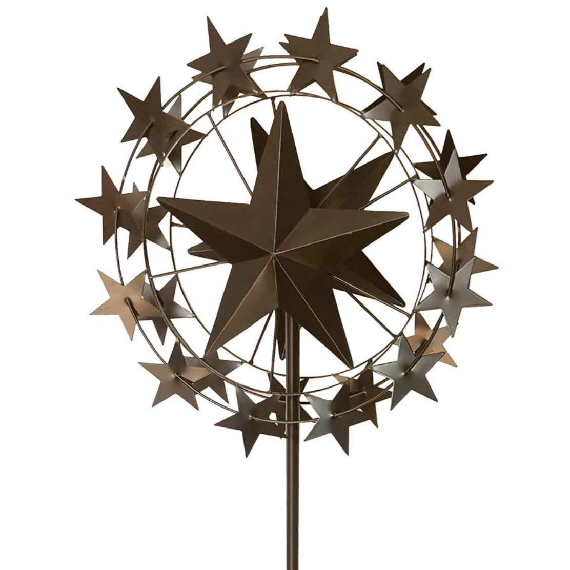 Add movement and visual intrigue to your outdoor décor with this star studded wind spinner. Designed with two pinwheels of rotating stars that spin at the same time, it creates a dynamic display that comes alive with every breeze. The layered star design brings a playful yet rustic charm to gardens, flower beds, or open lawn spaces.