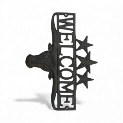 Crafted from solid cast iron, this plaque offers lasting durability and a substantial feel. The dark, antique-style finish enhances its rustic appeal, making it a standout accent for entryways, front porches, barns, cabins, or western-themed interiors.